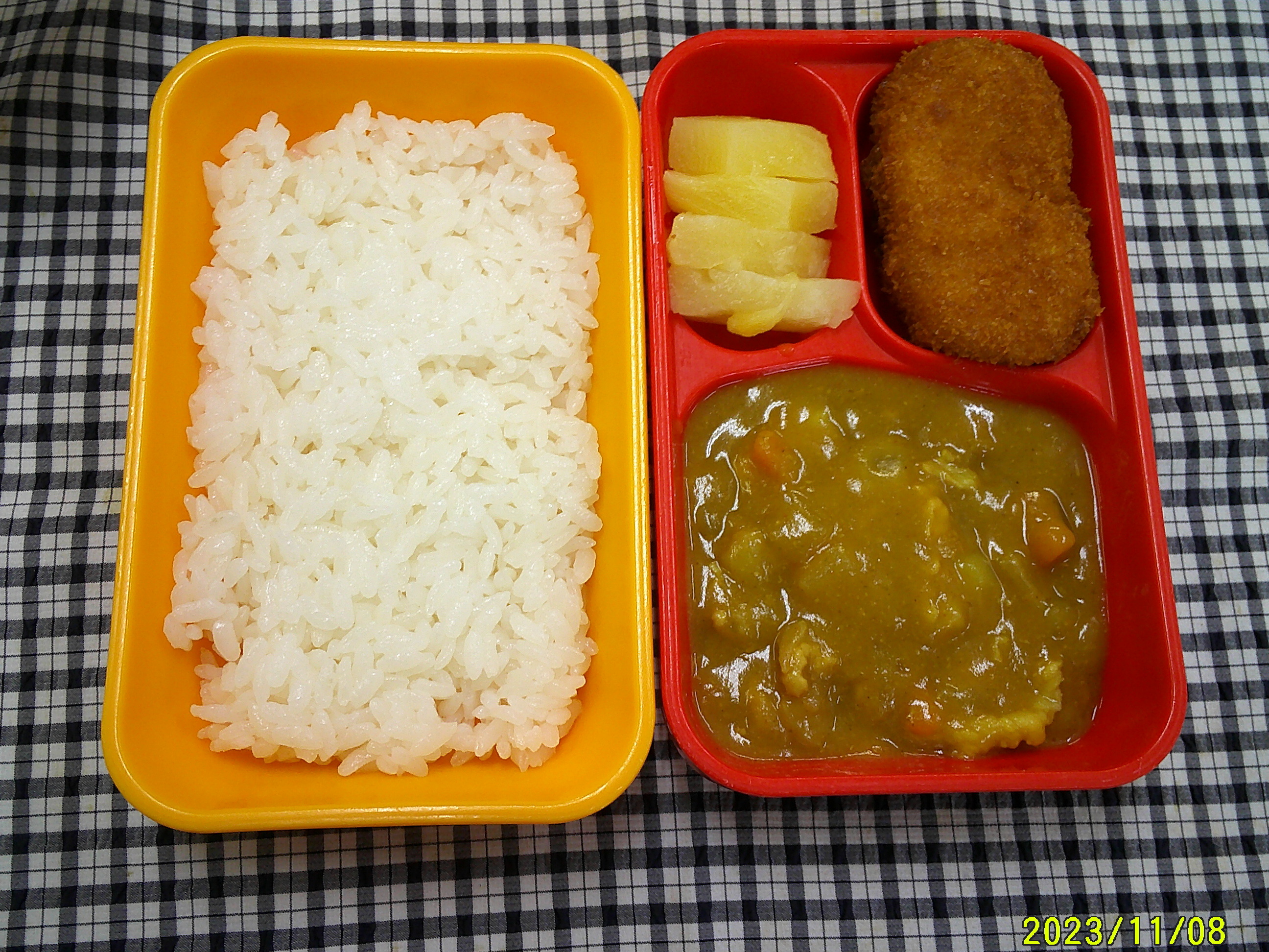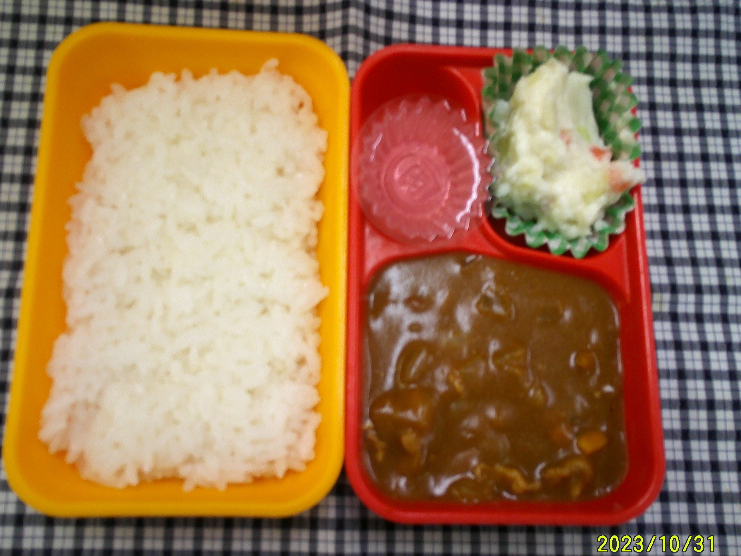 ごはん カツカレー ひじきの煮物 りんごゼリー