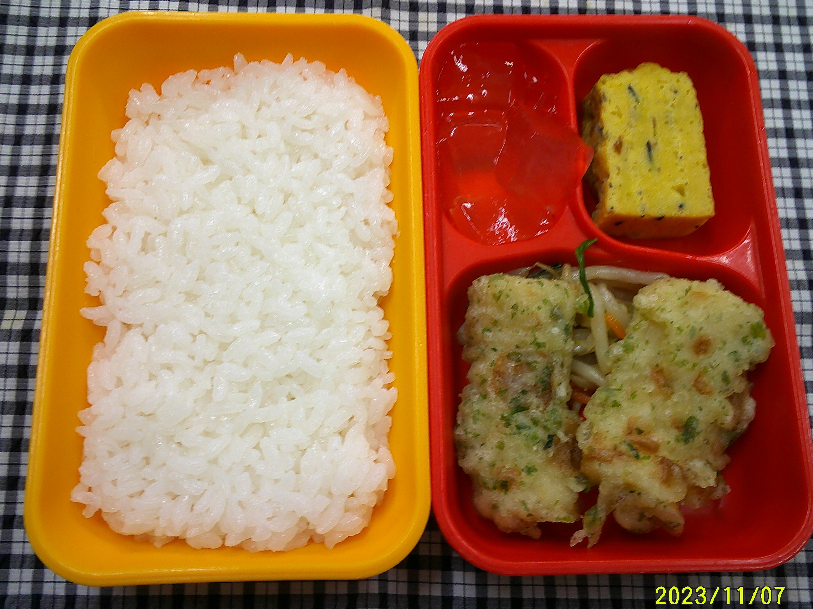 ごはん ちくわの磯辺揚げ もやしとにらのソテー