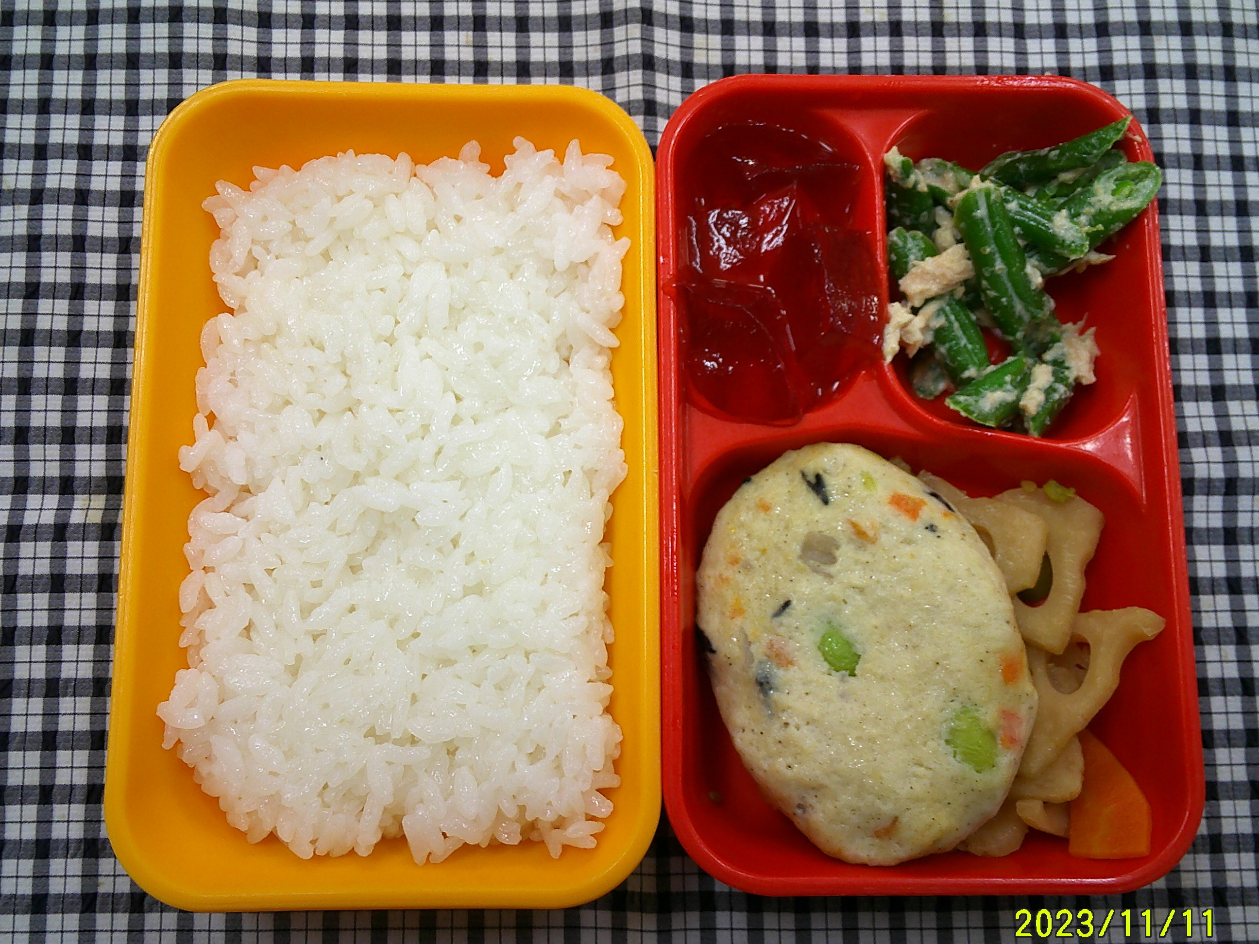 ごはん 豆腐ハンバーグ れんこんのきんぴら