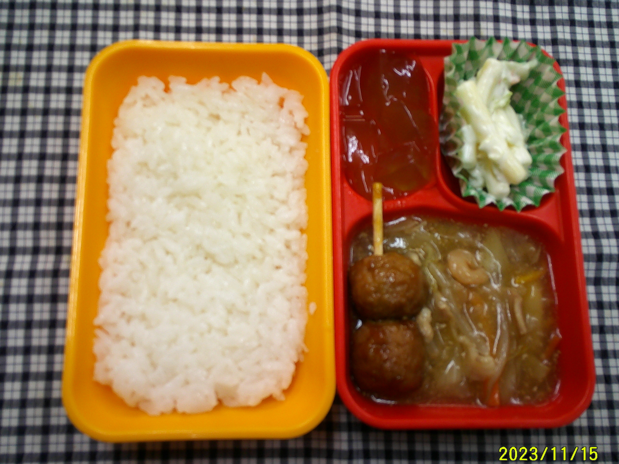 ごはん 中華丼 つくね串 マカロニサラダ シャインマスカットゼリー